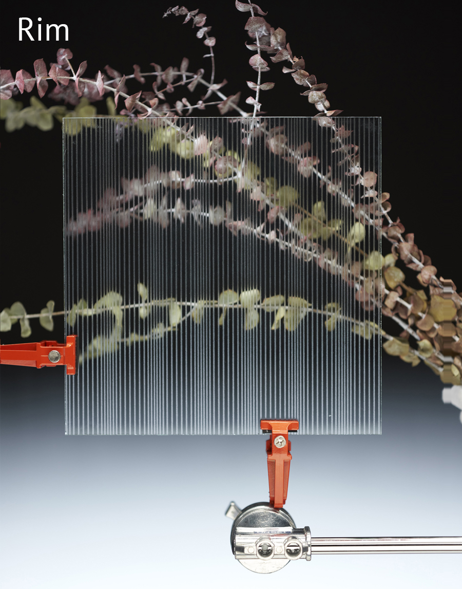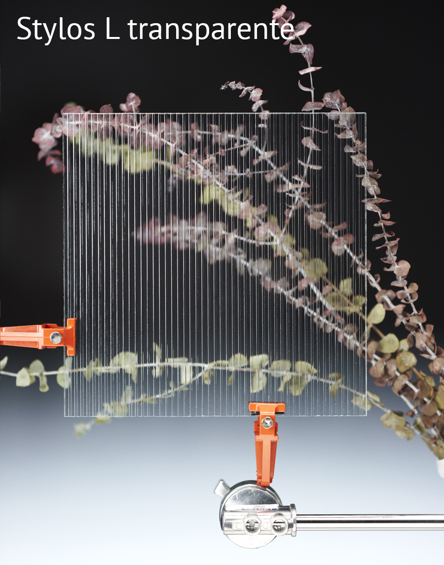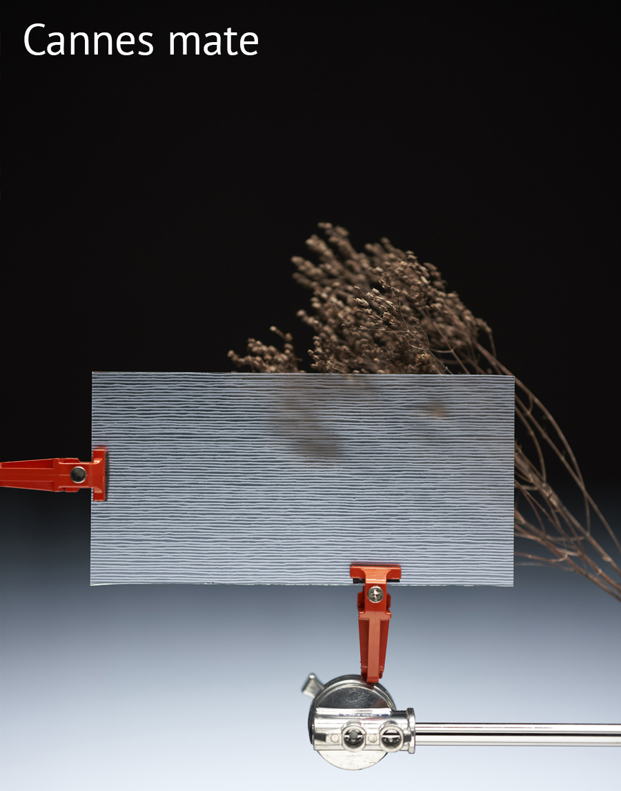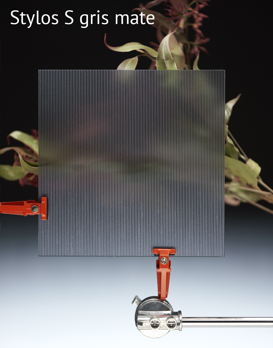 Colección de Vidrios con textura de patrones lineares: Stylos S Transp, Stylos S Mate, Stylos L Transp, Stylos L Mate, Cannes Transp, Cannes Mate, Rim