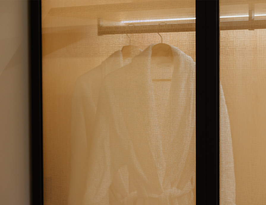 Detalles técnicosProductos utilizados: SPILL DESIGN FABRICEspecificaciones: Cristal esmaltado con patrón diseño textil, en color beige.Procesos: Templado